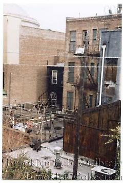 | Description: | Exterior view taken from the bathroom window of 1072 Lorimer Street, apartment 4R, showing the backs of two buildings. Bank dome can be seen in far left background. |