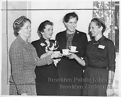 | Description: | Caption: "Gravesend toast--Success to the new Coney Island Child Care Center of the Shorefront Jewish Community Center in Gravesend Houses is drunk in tea by (left to right) Health Commissioner Leona Baumgartner; Mrs. Randolph Guggenheimer, president of the Day Care Council; Helen Harris, executive director of United Neighborhood Houses, and Mrs. Charles Anchell, chairman of the Child Care Committee of the Center." |