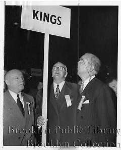 | Description: | Caption: "Historic marker--John J. Lynch, right, new chairman of the Democratic County Committee, raises the standard of Kings County, largest unit at the convention with 180 votes. Aaron L. Jacoby, chief clerk of the Surrogate's Court, stands by." |
