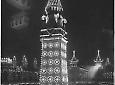 Luna Park Night view of section of Luna Park in Coney Island with tower in background and ornate architectural roof detail in foreground. |