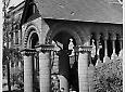 [Two male students at entrance of Pratt Institute Library] Two male students sitting on steps of arched, medieval portico (... |