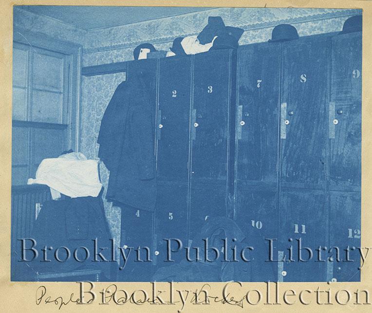 | Description: | View of twelve lockers in locker room at People's Palace, presumably in Manhattan. |