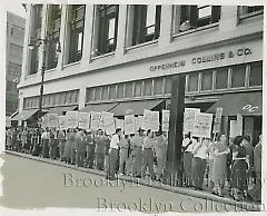 | Description: | One of four similar images. Caption: "Pickets--but no strike--Oppenheim Collins department store on Fulton St. is scene of mass demonstration staged by left-wing union leaders. Greater New York C. I. O. Council, despite orders from national C. I. O. not to do so, joined in sponsoring demonstration with leaders of C. I. O department store local. They charged store was fostering rival A. F. L. group." |