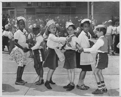 | Description: | Caption: "Polka performance--Dressed in colorful native costumes, children of Public School 45, Lafayette and Classon Aves., dance the polka at their annual festival today in the school year. A total of 15 nations were represented at the festival." |