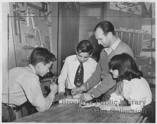 | Description: | Caption: "Pride of East New York--For 30 years the Pride of Judea Children's Home, at 1000 Dumont Ave., has been an outstanding asset to the East New York community. ... Pictured is a typical after-school class in craftsmanship offered to the children who regularly attend a nearby public school. Andrew Schreiber is the instructor. the home ... is supervised by Julius Nierow, executive director. Jacob H. Cohen has been president of home for the past 11 years." |
