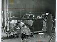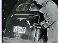 Bullet hole in pursued car Night photograph of rear of automobile with man in trench coat pointing to bullet hole near license plate; white arrow superimposed on image also pointing to bullet hole. Caption: "BULLET HOLE IN... |