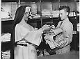 Communion breakfast Caption: "Communion breakfast--Richard Crane, one of the boys from St. Vincent's Home for Boys, 66 Boerum Place, welcomes John Heney,... |