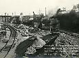 View of construction site for subway line (the Sea Beach or N line) showing tracks receeding to and passing under trestle bridge...
