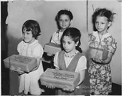| Description: | Caption: "They're helping--Happy pupils (left to right) Anna Ricci, Gloria Domanico and Lorraine Bova hold the packages [addressed to "Scolastico Patronato, Palazzo Communale, Pisa, Italy"] that soon will be on the way to their adopted friends of Pisa, Italy." A fourth girl on far right, also holding package, is unidentified. |