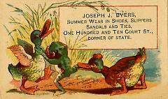 | Description: | Summer wear in shoes, slippers and ties. Frog fighting with two ducks. |