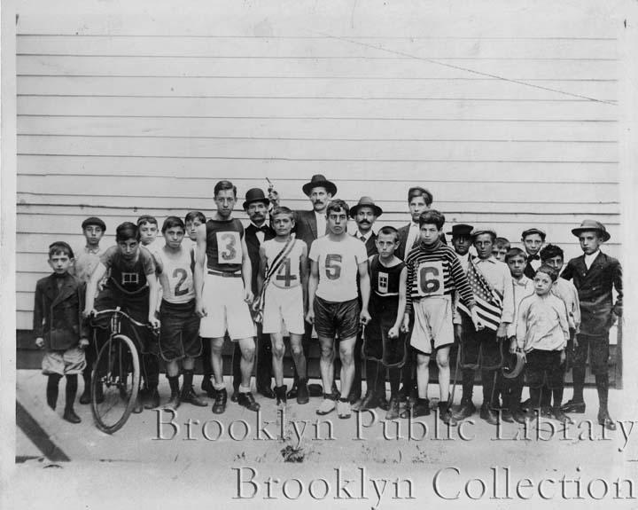 | Description: | Caption: "Williamsburg Athletes--This group of young athletes, whose grim looks make up for their lack of size, posed for the camera in the yard of the photographer at 100 Graham Ave., on Aug.15, 1909. the three men in the back are Salvatore Planeta, Pietro di Benedetto and Joe Rizzo, who worked for Rocco Trotta, the marble man, at 24 Union Ave., near Montrose. The photo has been treasured these 33 years by Anthony Treglia, now living at 353 S.5th St., Brooklyn." |