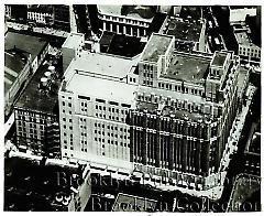 | Description: | Aerial view of Abraham & Straus department store on Fulton and Livingston Streets; employees or customers lounging on rooftop deck; surrounding streets and buildings on all four sides. |