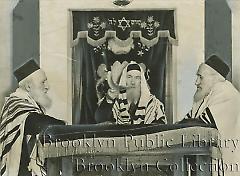 | Description: | Caption: "Yesterday at sundown Jews throughout the world began Hebrew New Year 5699 with the andient traditional signal on the ram's horn, which has sounded alike in eras of happiness and persecution. In the Brooklyn Hebrew Home and Hospital for the Aged, Howard and Dumont Aves., Morris Yankelowitz, 94-year-old patriarch, wearing the robes of worship, sounds the ancient blast in the presence of two aged men." |