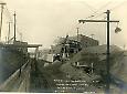 View of construction site for subway line (the Sea Beach or N line) showing tracks receeding to and passing under trestle bridge...